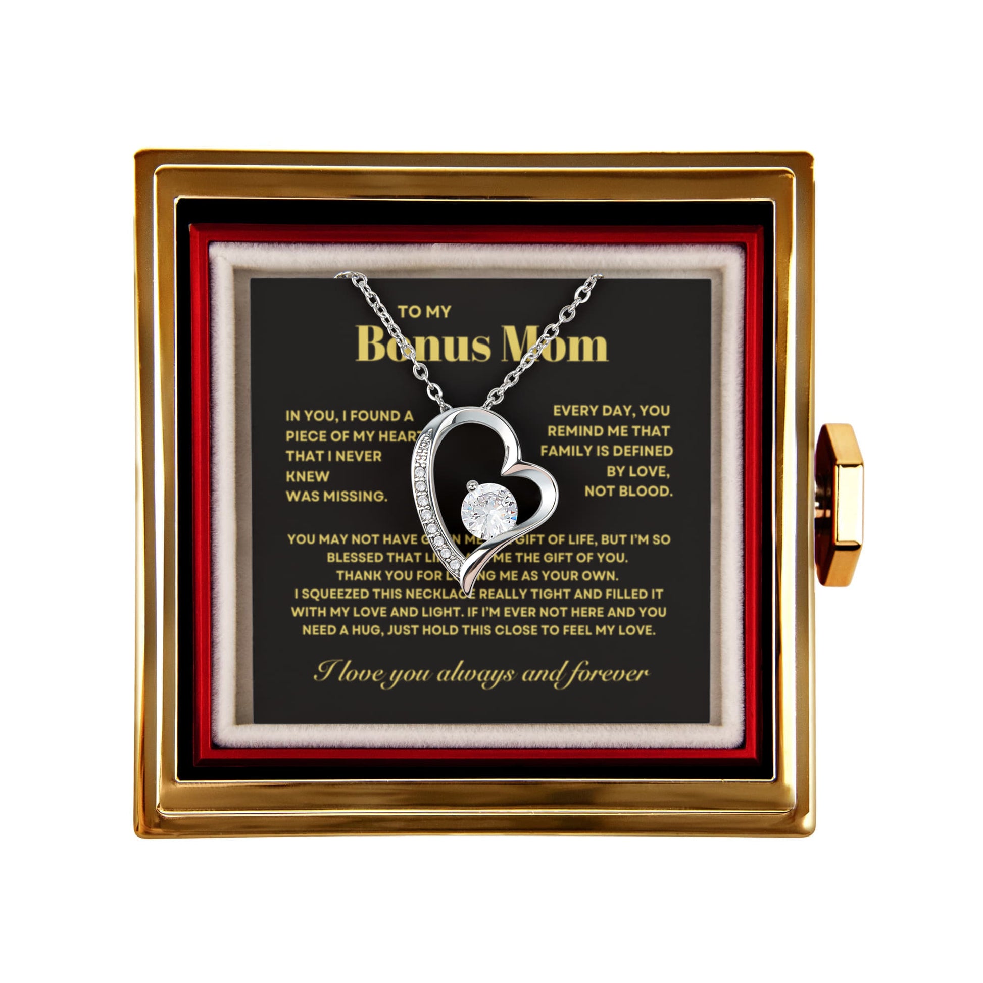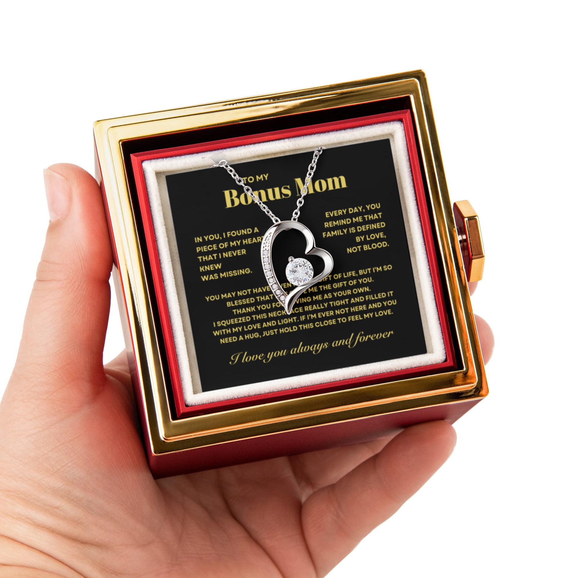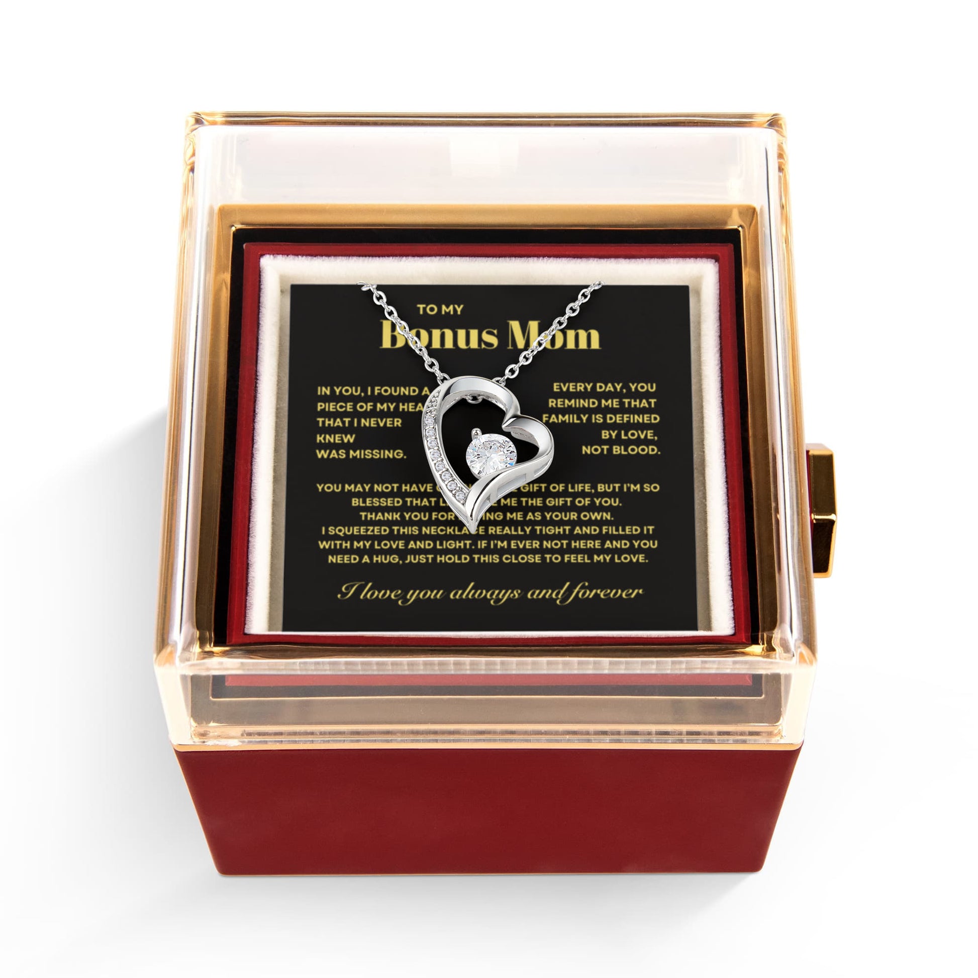Bonus Mom Necklace Gift from Stepdaughter, Forever Love Necklace with Rotating Rose Box, Gift for mothers day, Valentines Day, Birthday