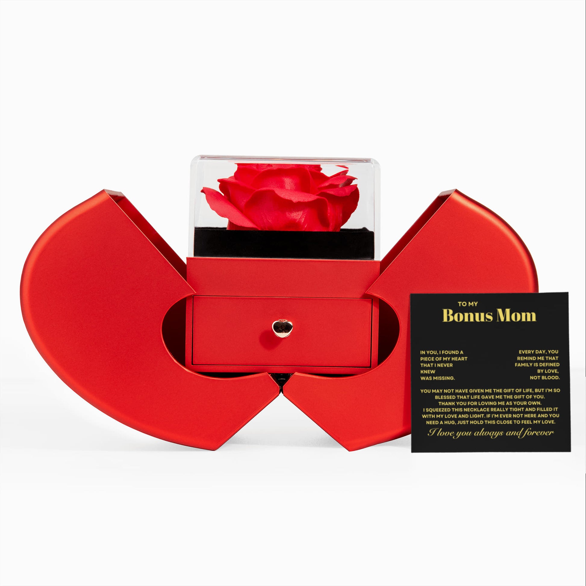 Bonus Mom Necklace, Love Knot Pendant with Rose Gift Box, Gift for Birthday, Valentines day, Mothers day, Christmas