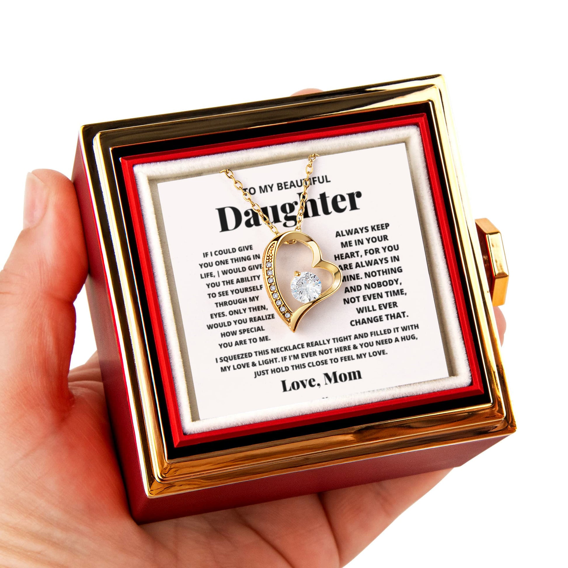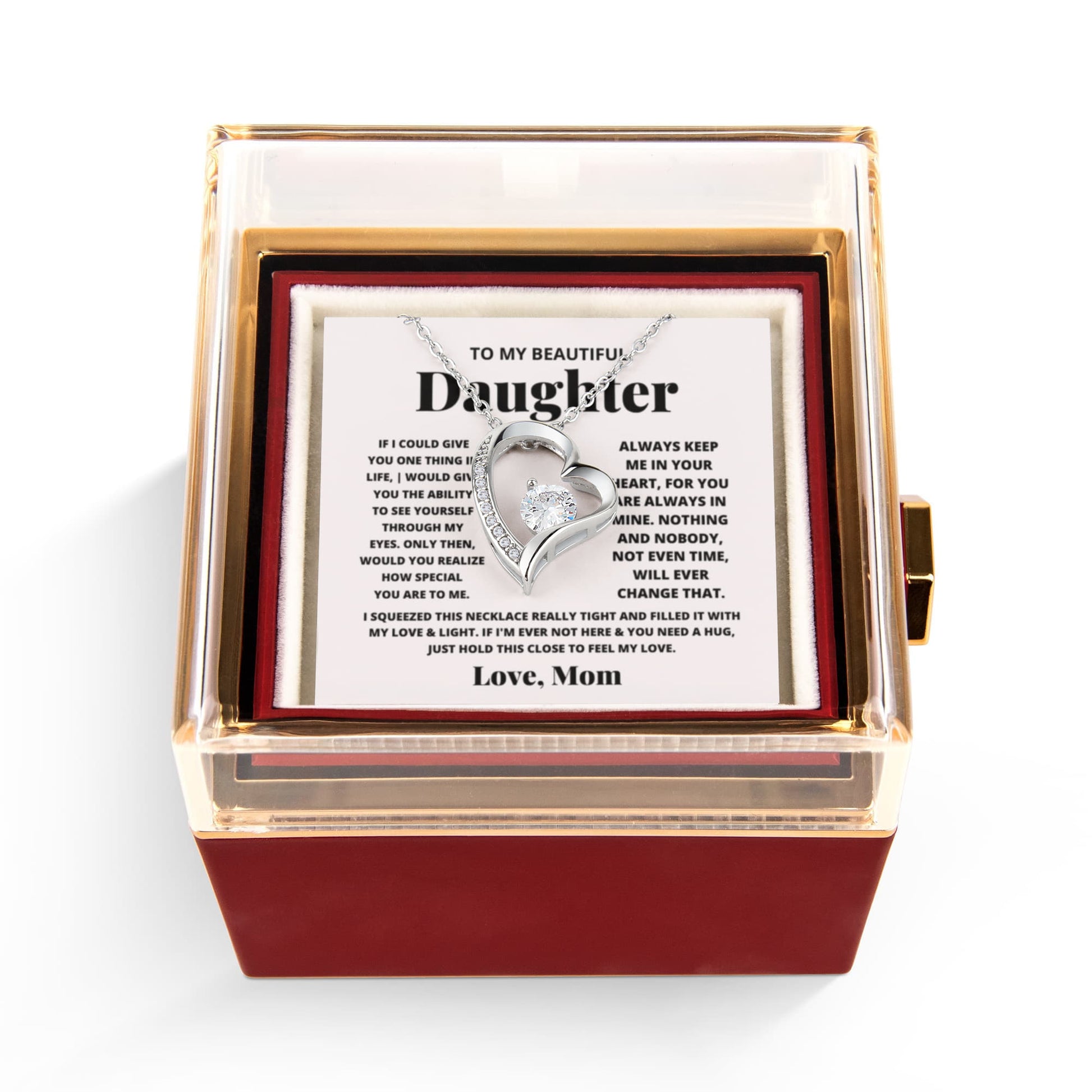 Daughter Necklace from Mom, Forever Love Pendant with Rotating Rose Box, Gift for Birthday, Valentines Day, Graduation, Christmas