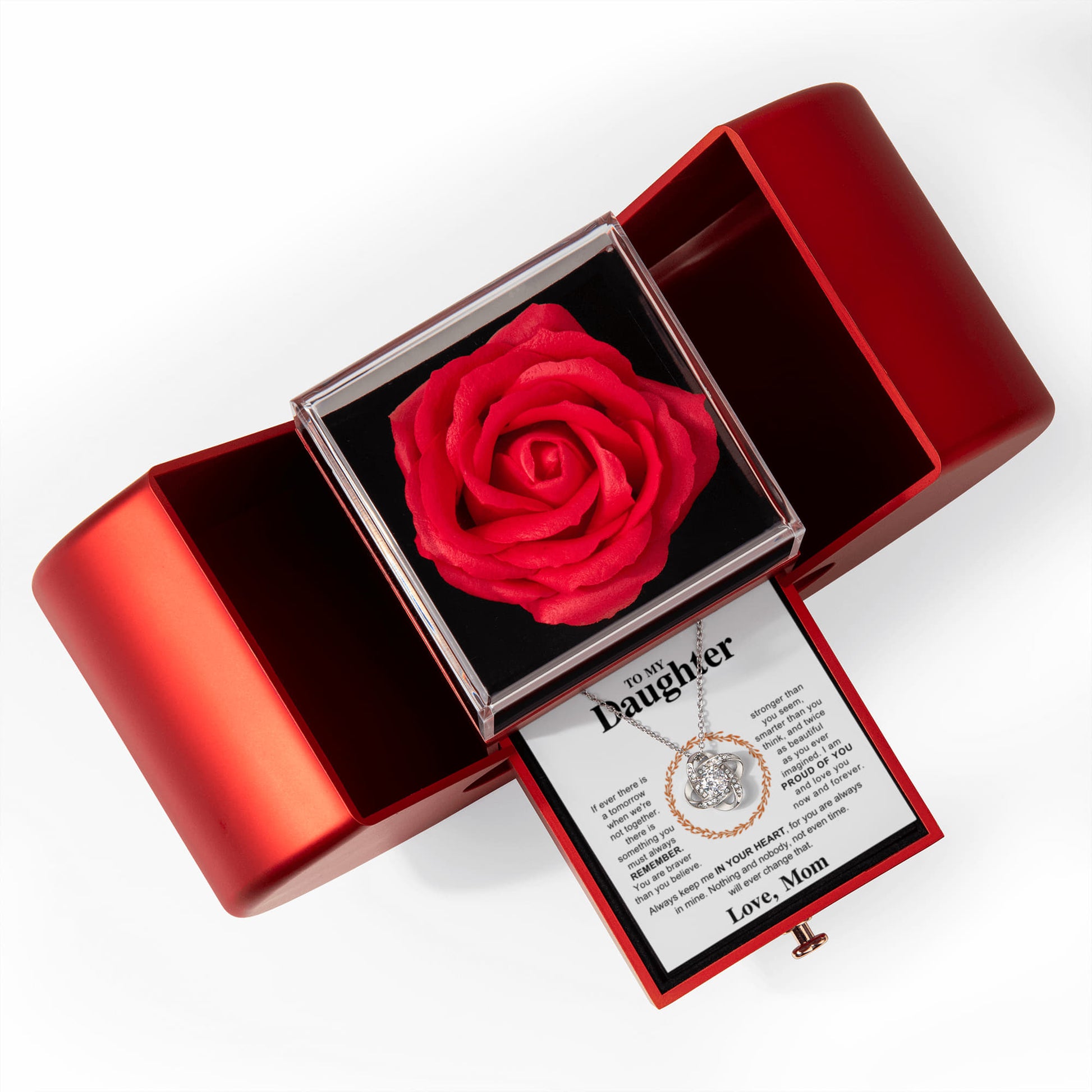 Daughter Necklace from Mom, Love Knot Pendant with Rose Gift Box, Gift for Birthday, Valentines day, Mothers day, Christmas