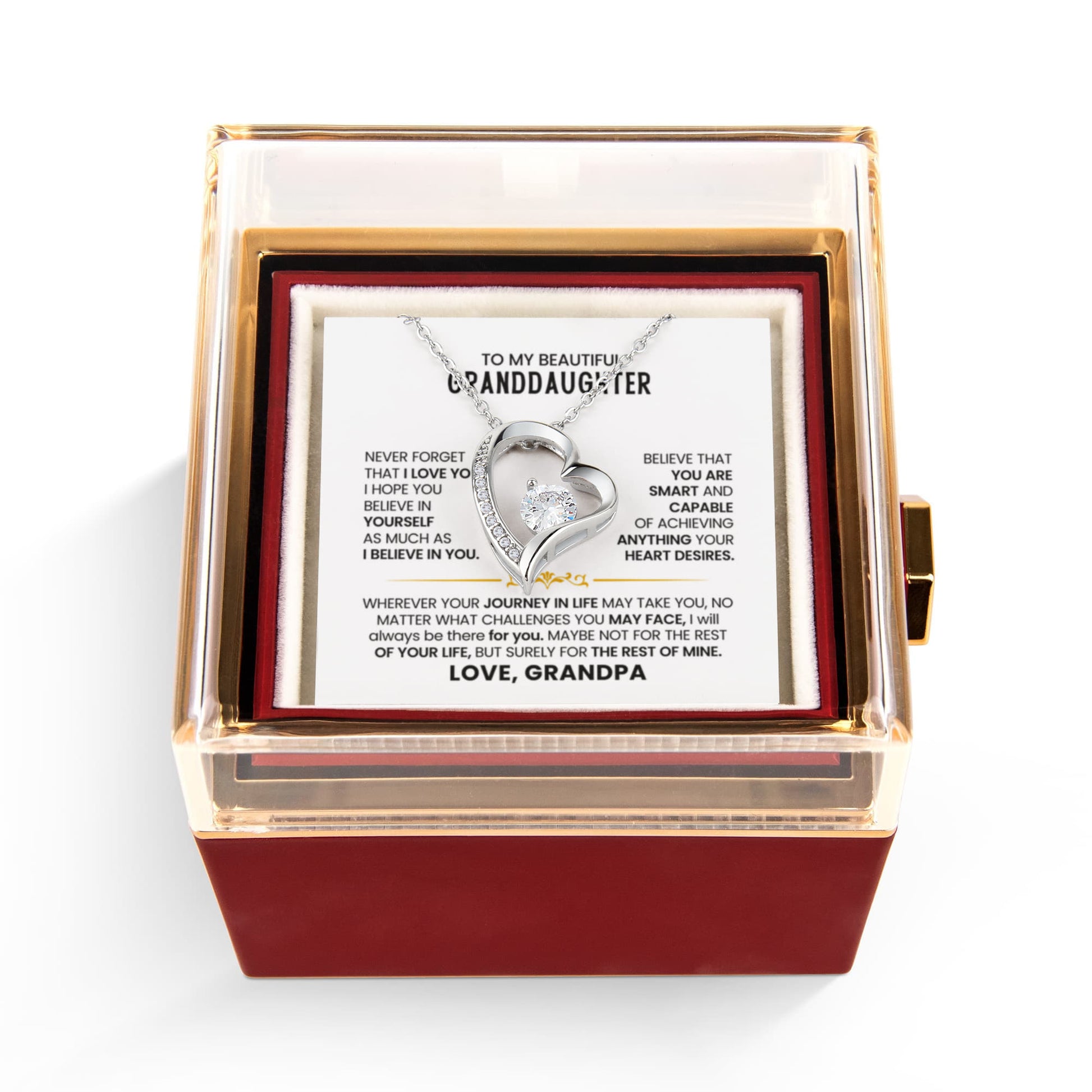 To my Granddaughter necklace from Grandparents, Forever Love Pendant with Rotating Rose Box, Gift for Birthday, Valentines Day, Graduation, Christmas