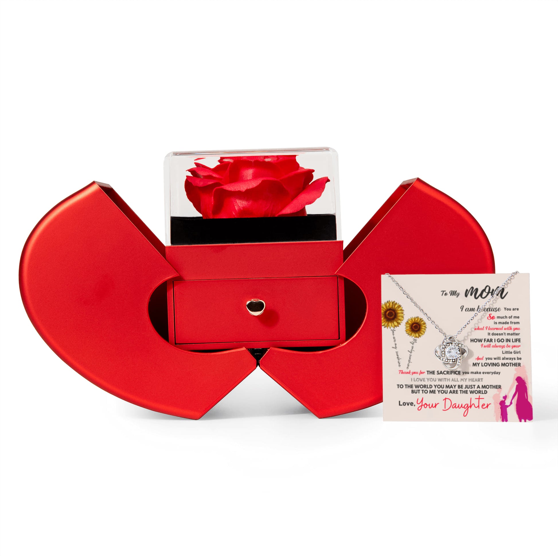 To my Mom Necklace from Daughter, Love Knot Pendant with Rose Gift box, Gift for Valentines day, Mothers day, Christmas, Birthday