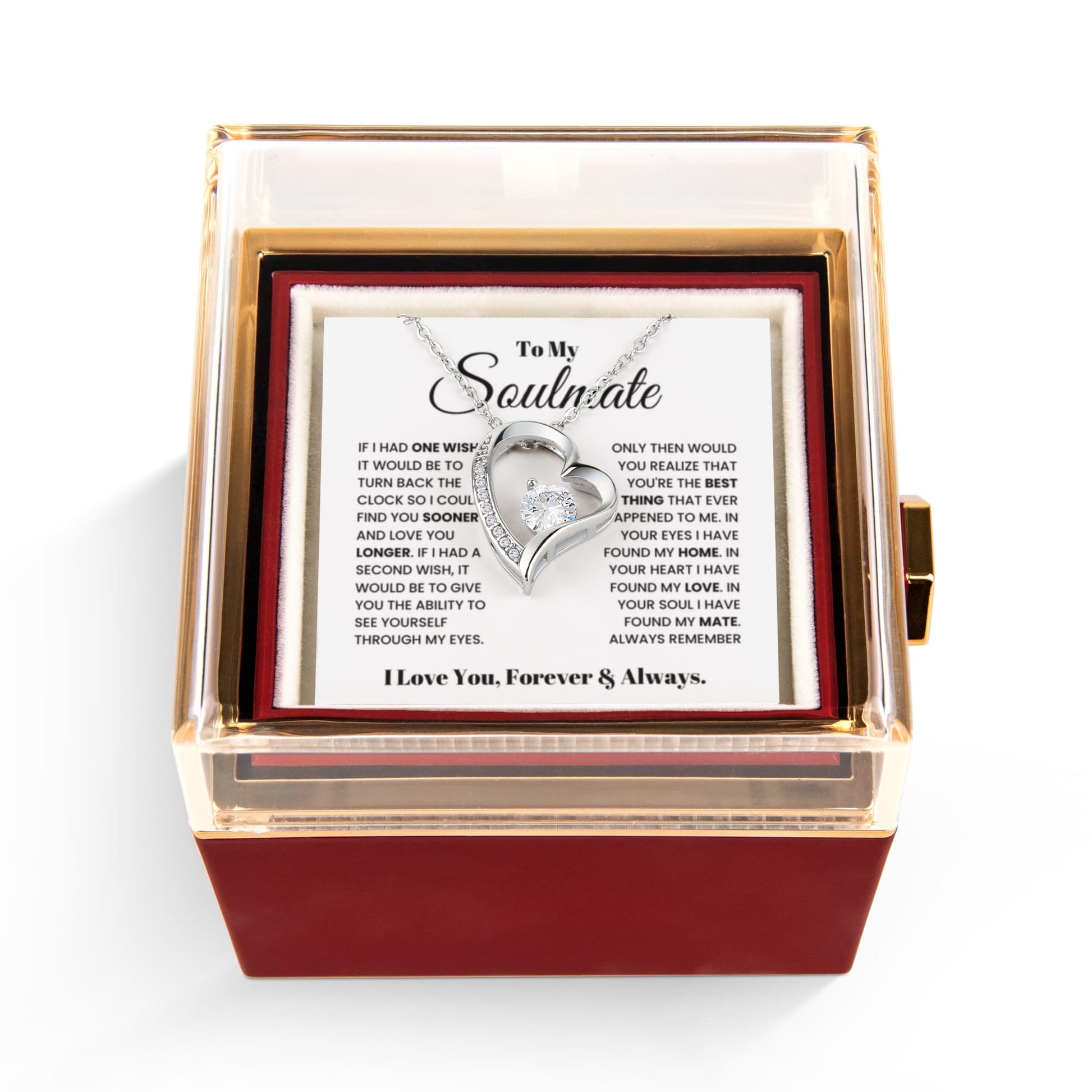 To my Soulmate Wife Necklace from Husband, Forever Love Pendant with Rotating Rose Box, Gift for Anniversary, Valentines Day, Birthday