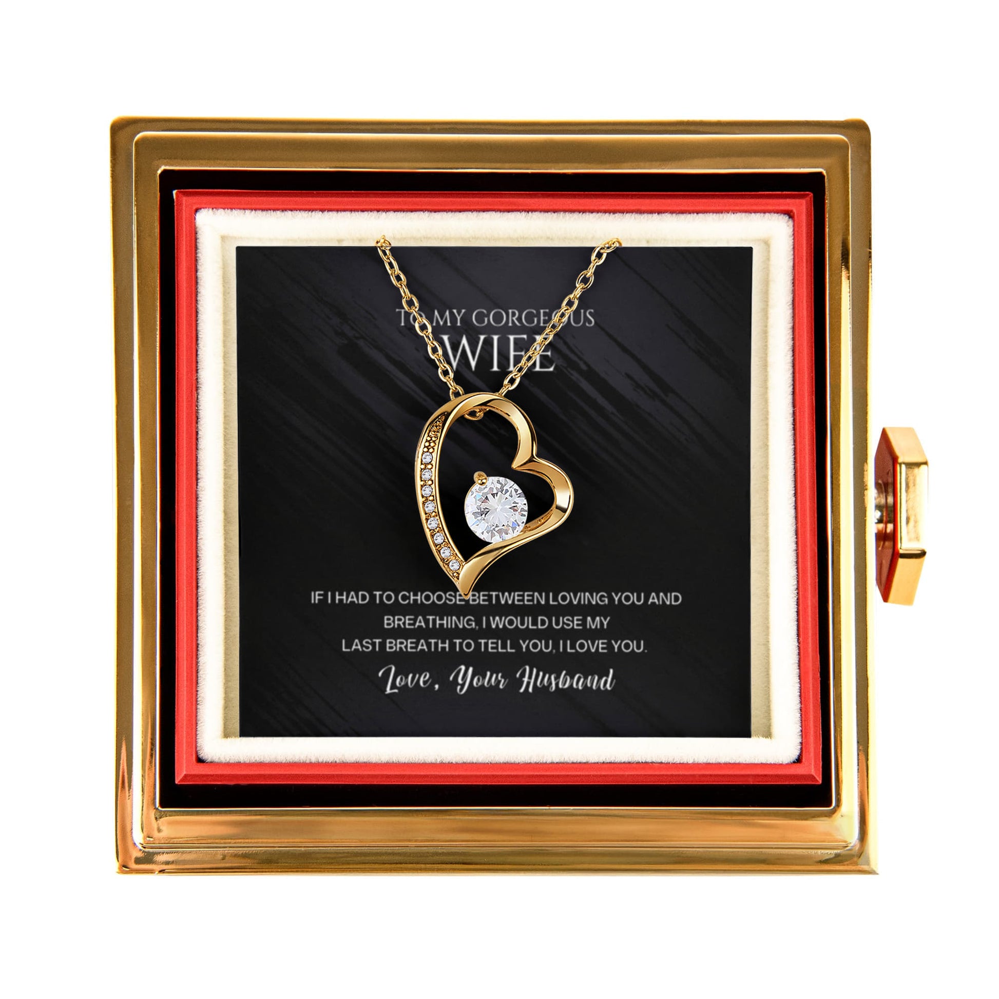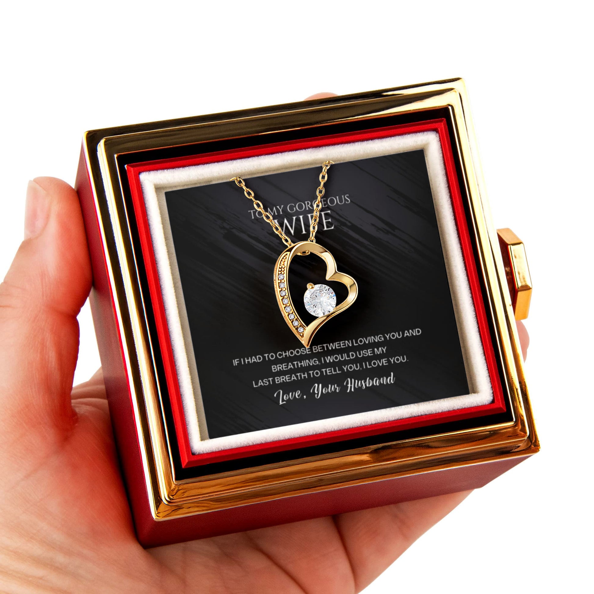 To my Wife Necklace from Husband, Forever Love Pendant with Rotating Rose Box, Gift for Anniversary, Valentines Day, Birthday